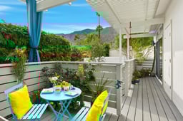 Located on a quiet street within the iconic Palm Springs Mobile Club, this thoughtfully landscaped home offers privacy without compromising spectacular mountain views. Leaning into the sought after mid-century modern design, the home delivers bright, efficient, low-maintenance desert living. Highlights include soaring 9-foot ceilings and clerestory windows that flood the space with natural light. The well-appointed galley kitchen is both stylish and functional. The primary suite features mirrored closets, an ensuite bath with a walk-in shower, and direct access to the outdoors. An expansive extended deck invites seamless indoor-outdoor living ideal for hosting or just relaxing under the desert sky. The fully enclosed yard is thoughtfully designed with outdoor curtains for year-round sun control and raised garden containers for effortless desert gardening, a perfect space for both entertaining and pampered pets. Offered turn-key furnished, this home is move-in ready. Palm Springs Mobile Club is a vibrant and welcoming community rich in amenities, including two dog parks, a pool and spa, fitness center, a clubhouse with dance hall and game room, billiards, shuffleboard, BBQ area, and fire pit, all embracing an exceptional Palm Springs lifestyle.
