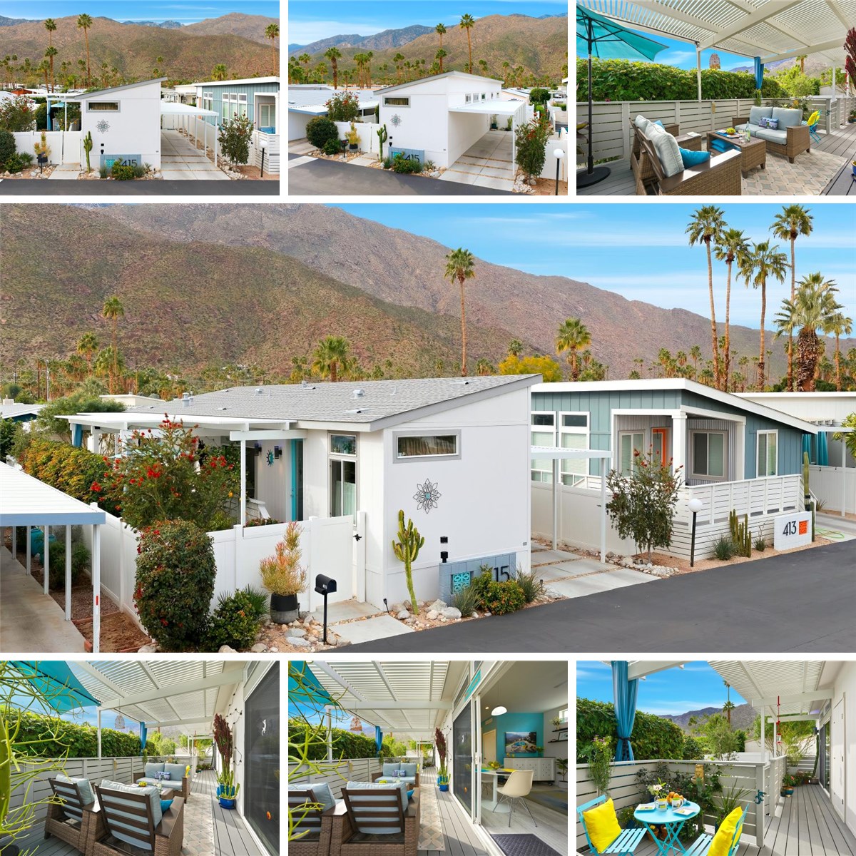 Located on a quiet street within the iconic Palm Springs Mobile Club, this thoughtfully landscaped home offers privacy without compromising spectacular mountain views. Leaning into the sought after mid-century modern design, the home delivers bright, efficient, low-maintenance desert living. Highlights include soaring 9-foot ceilings and clerestory windows that flood the space with natural light. The well-appointed galley kitchen is both stylish and functional. The primary suite features mirrored closets, an ensuite bath with a walk-in shower, and direct access to the outdoors. An expansive extended deck invites seamless indoor-outdoor living ideal for hosting or just relaxing under the desert sky. The fully enclosed yard is thoughtfully designed with outdoor curtains for year-round sun control and raised garden containers for effortless desert gardening, a perfect space for both entertaining and pampered pets. Offered turn-key furnished, this home is move-in ready. Palm Springs Mobile Club is a vibrant and welcoming community rich in amenities, including two dog parks, a pool and spa, fitness center, a clubhouse with dance hall and game room, billiards, shuffleboard, BBQ area, and fire pit, all embracing an exceptional Palm Springs lifestyle.
